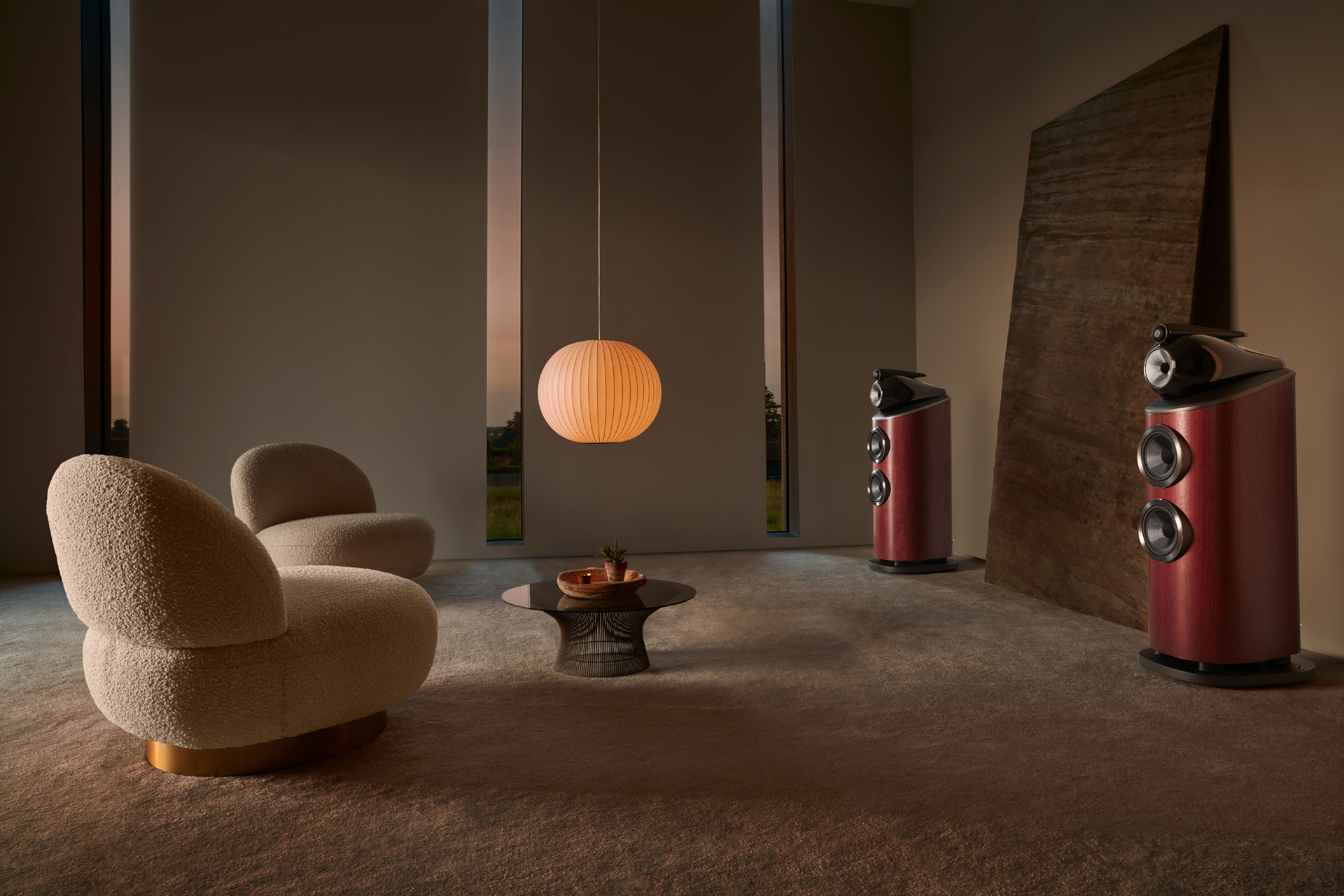 803 D4 mounts two Aerofoil™ bass cones in twin solid aluminium bass pods, each of which is clamped into an aluminium plate fixed to the stiffest part of its curved cabinet. Formed as single pieces of metal, these stiff structures provide the perfect mechanical location for those powerful bass cones.