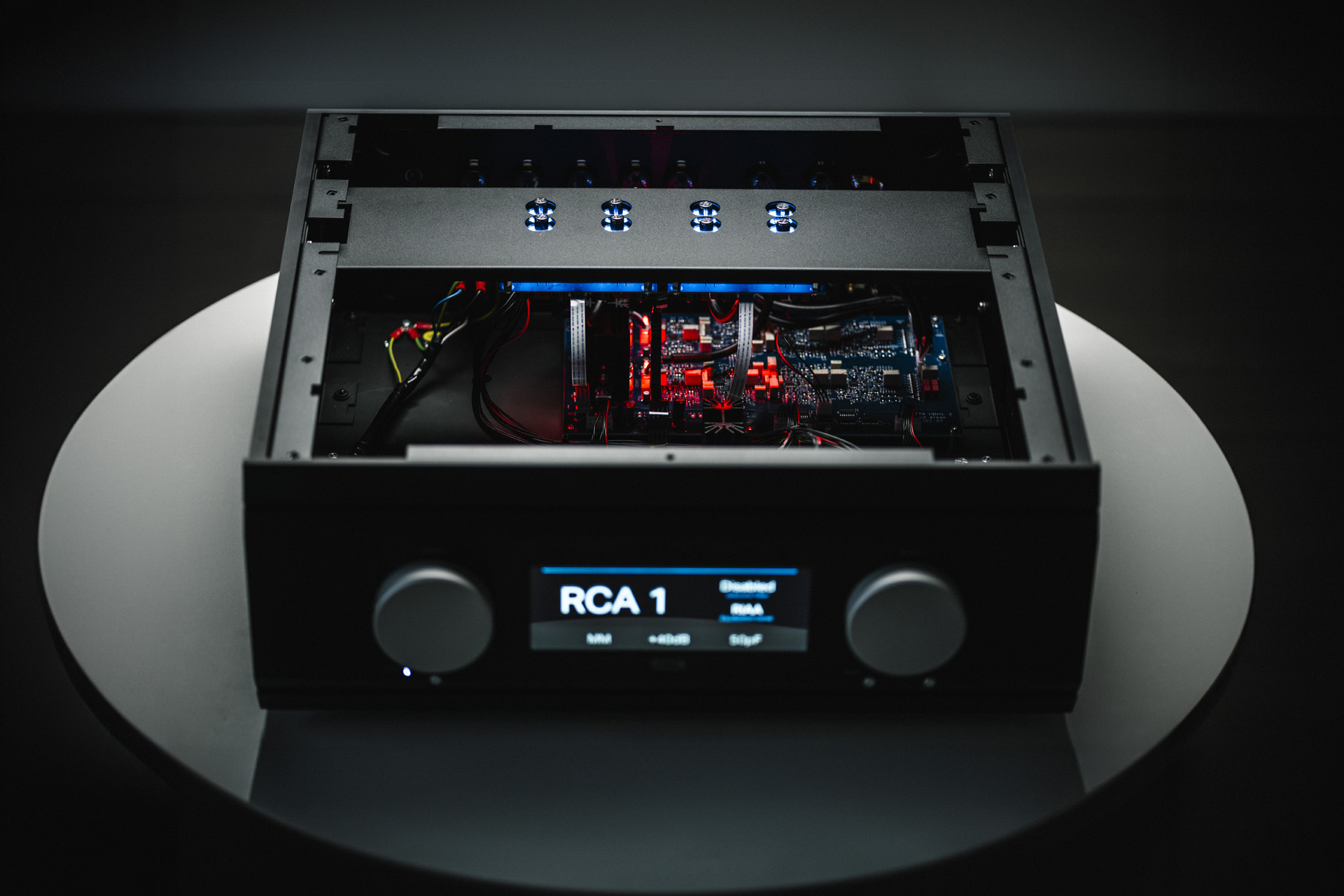Featuring eight 7586 Nuvistor tubes in the buffer stage, ultra-low-noise circuitry, and a Super Silent power transformer with DC blocking and filtering, it guarantees the lowest distortion and noise floor. Both RCA and XLR inputs/outputs operate on independent stages, allowing simultaneous use. Cartridge loading is highly flexible, with MM and MC support, adjustable gain (+6dB option), and individually stored settings for each input.