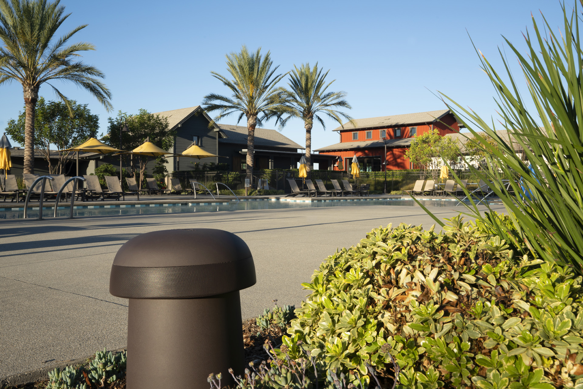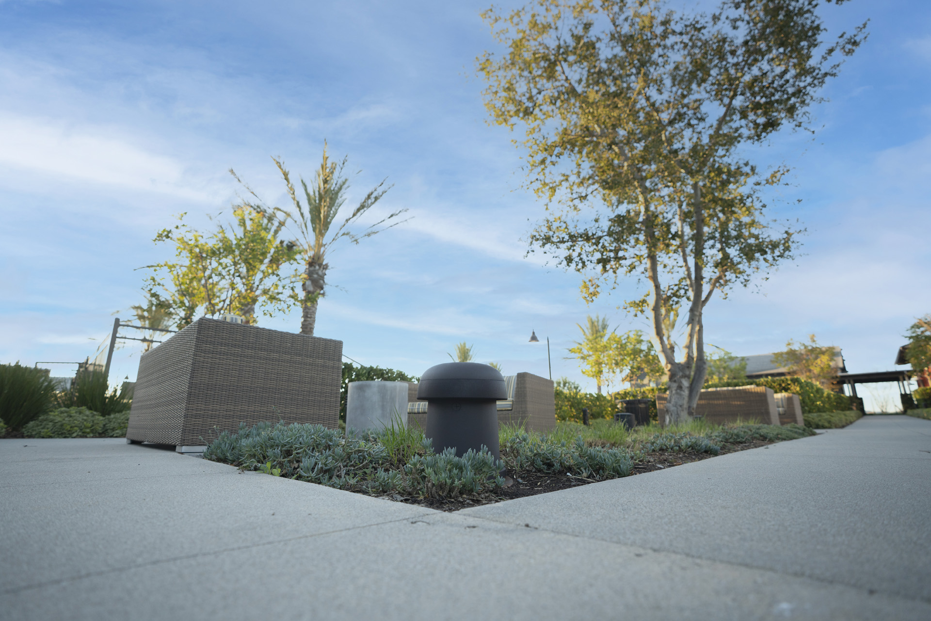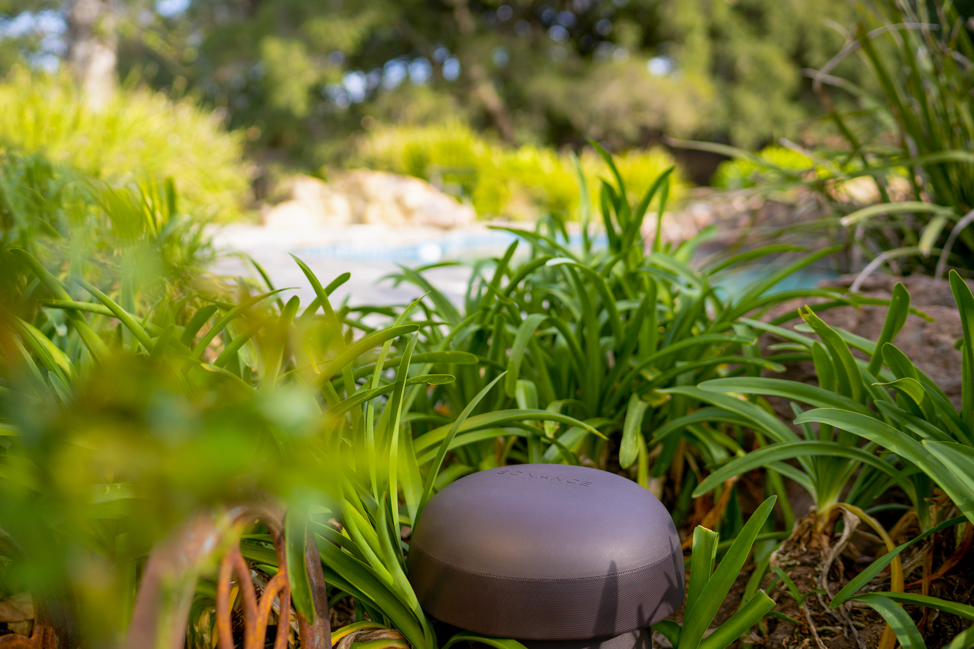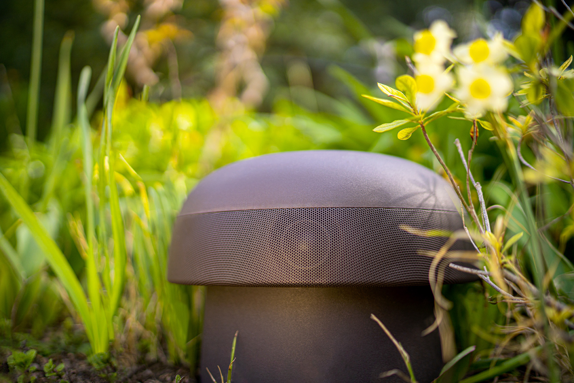 The textured dark brown enclosure of the Omni-6T is designed to blend into ground cover, garden beds and foliage.