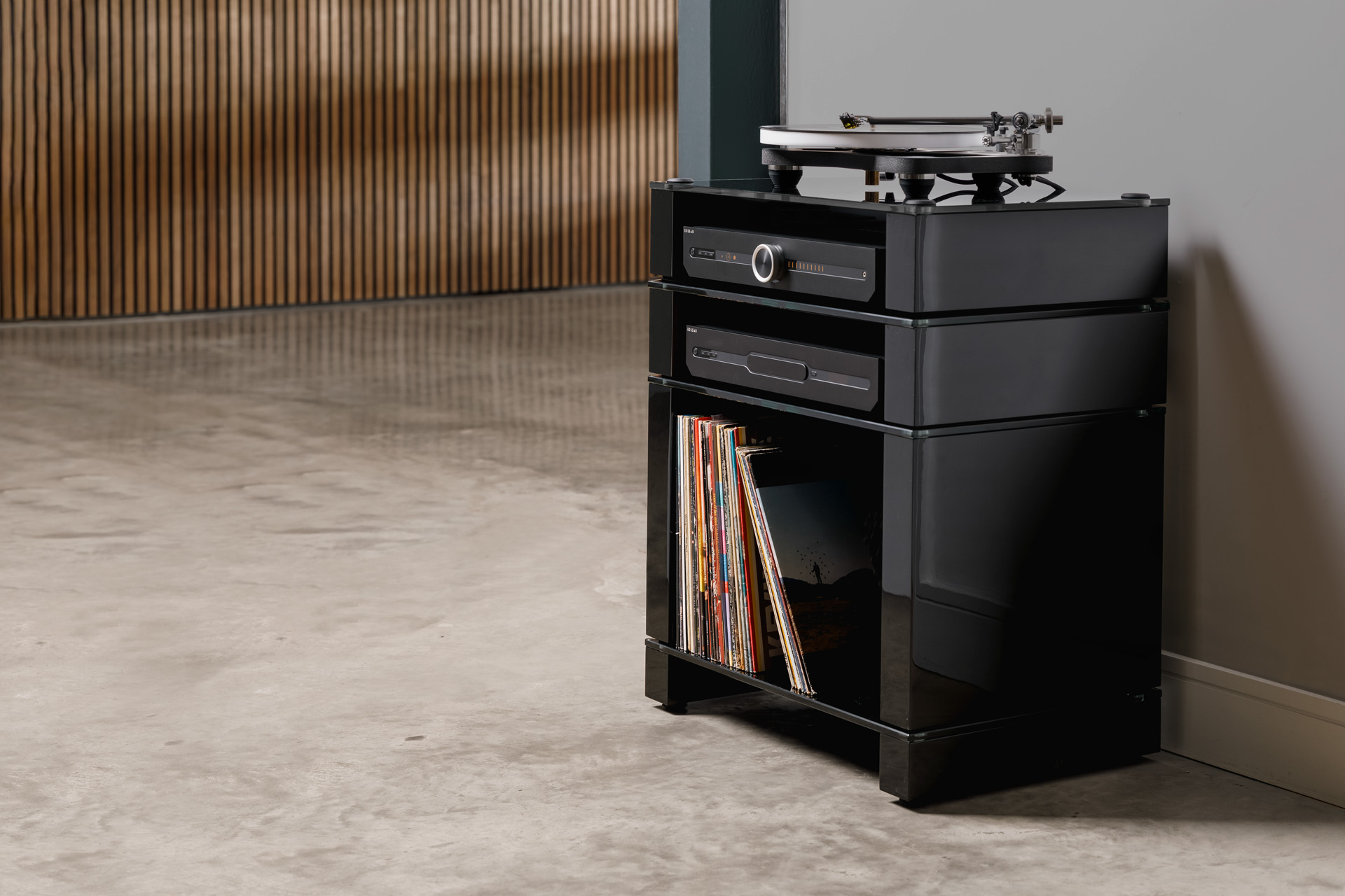Each shelf holds up to 40 kg, and options include 10mm glass or 13mm plywood. The stand also comes in finishes like high-gloss black, natural walnut, and satin white. Measuring 602mm wide and 402mm deep, the Stax 2G 4-shelf high-fidelity stand is built for functionality and elegance. Its recommended maximum height is 1100mm for stability. Engineered for optimal airflow, cable management, and vibration reduction, the Stax 2G 4-Shelf Hi-Fi Stand is a stylish, durable choice to enhance any audio setup.