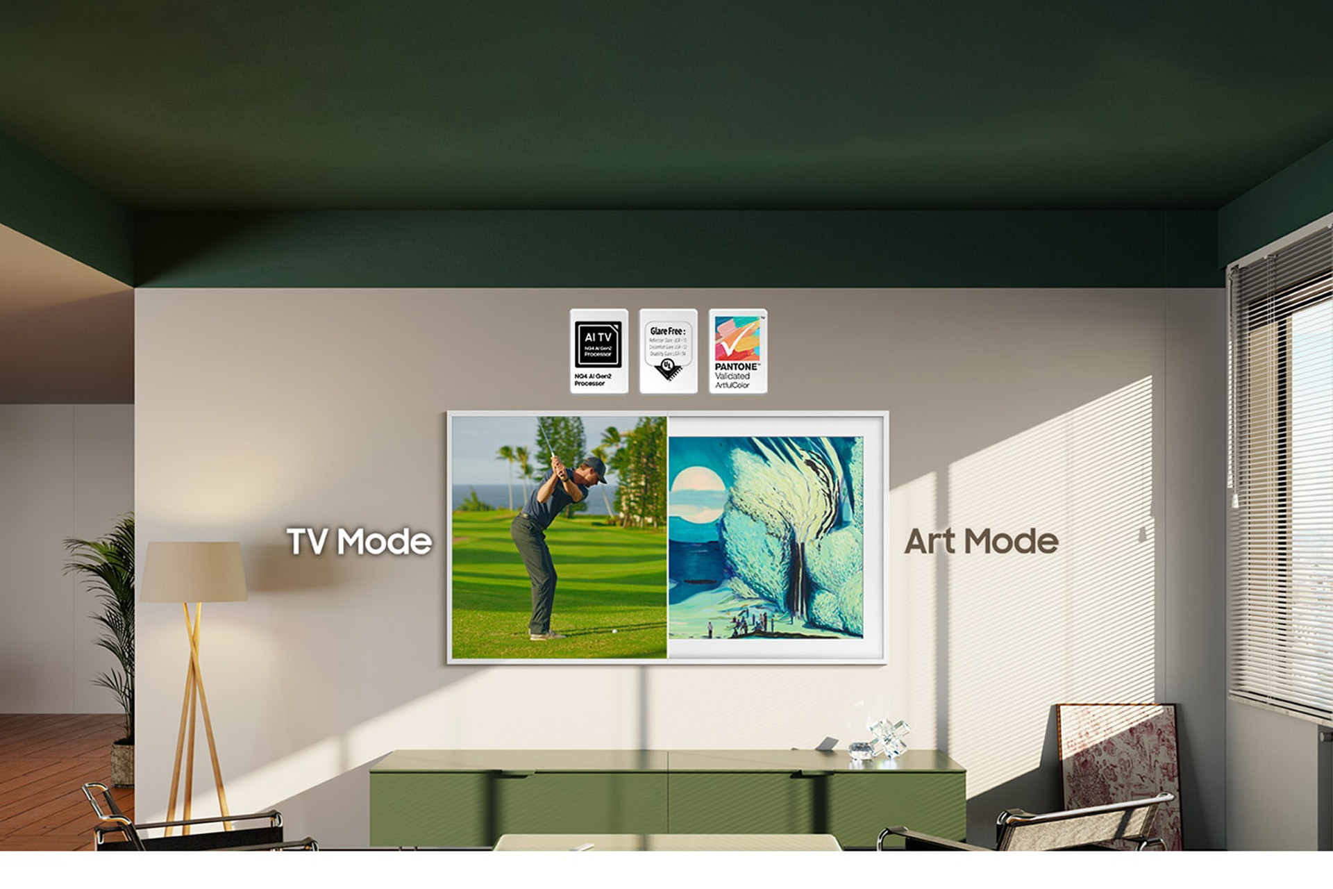 The Frame LS03A seamlessly blends art and technology. With its QLED 4K display, it delivers vibrant visuals, while Art Mode transforms it into a gallery piece when not in use.