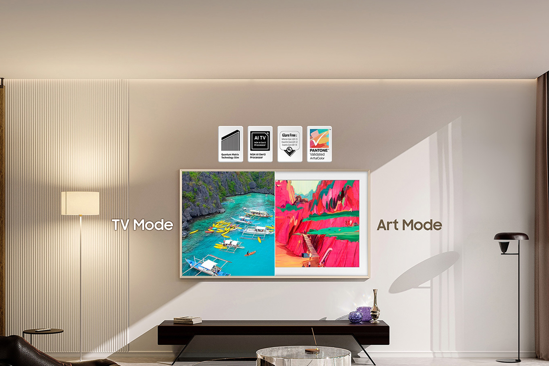 Discover how The Frame Pro can elevate your living space. When not in use, it transforms into a beautiful piece of art, displaying curated artworks or personal photos in stunning 4K resolution. The customizable bezel allows you to match the TV’s appearance with your room’s decor, creating a harmonious blend of technology and artistry.