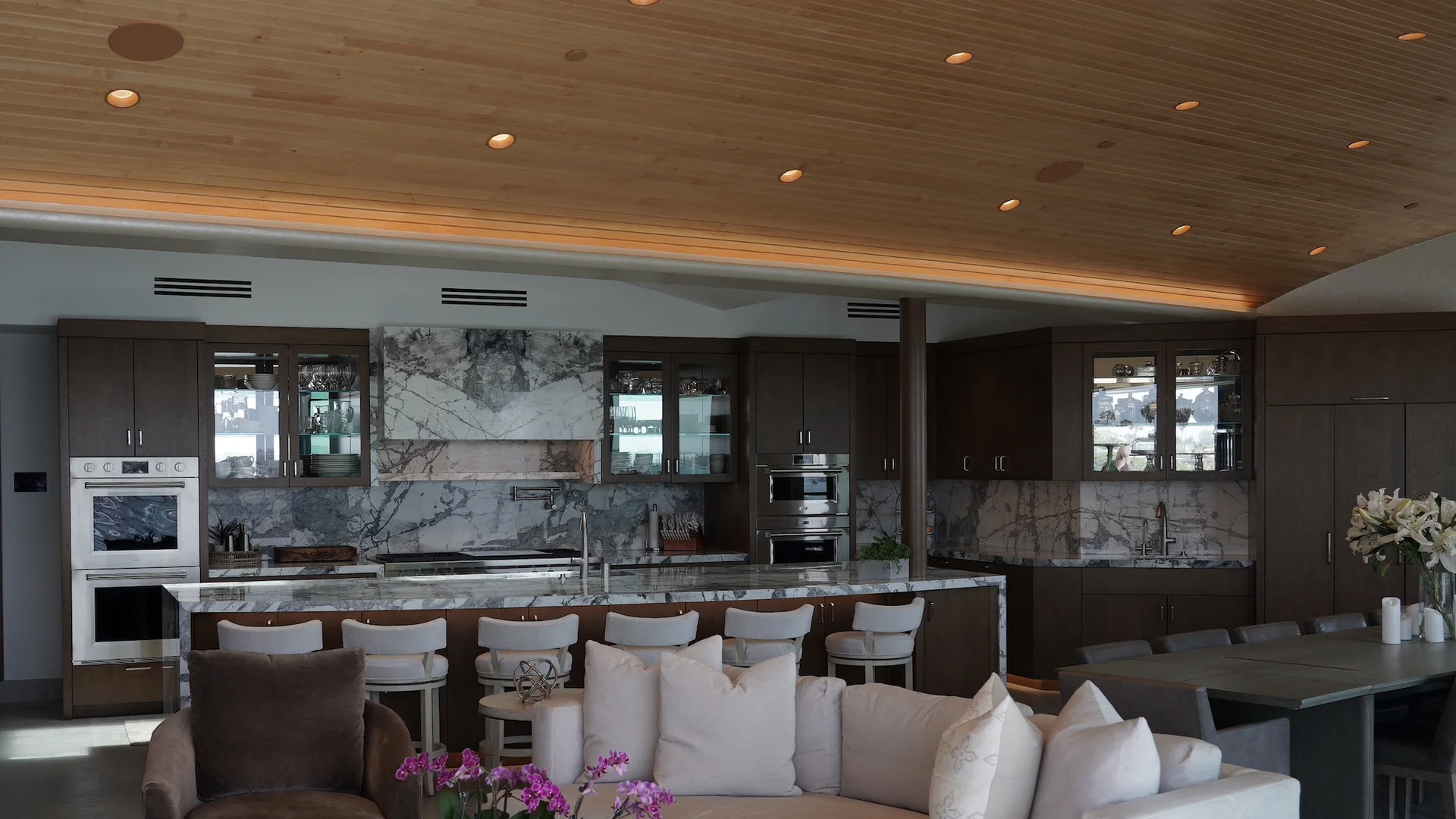 VX86R 8″ round in-ceiling speakers with white micro trim grille exemplify Sonance’s Visual Experience Series.
